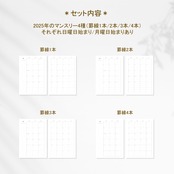 それぞれ日曜日始まり、月曜日始まりをご用意しております。