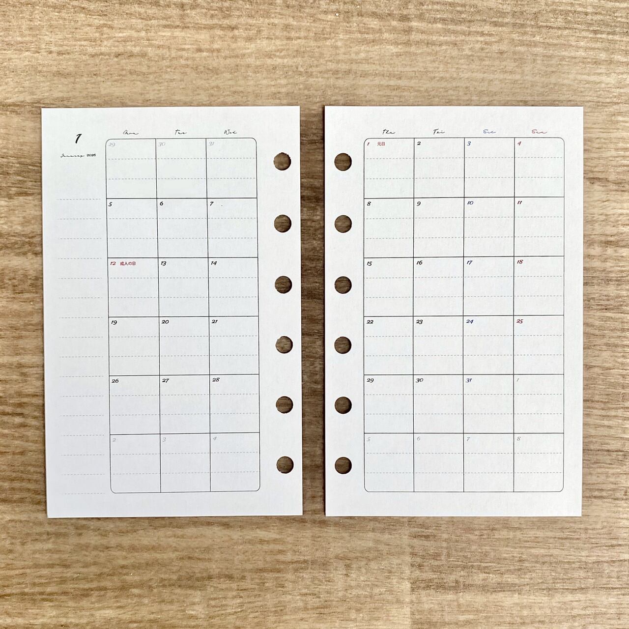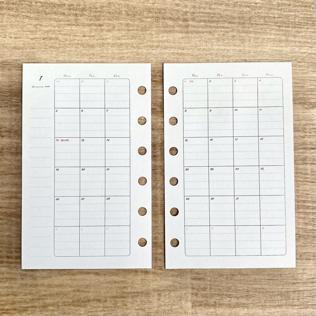 ミニ6サイズのマンスリー(システム手帳リフィル)です。