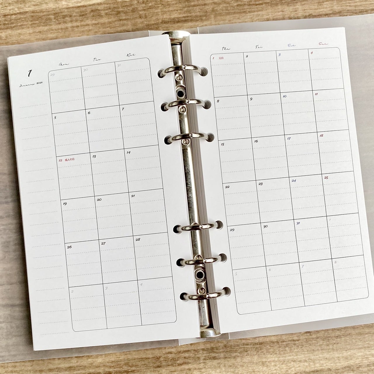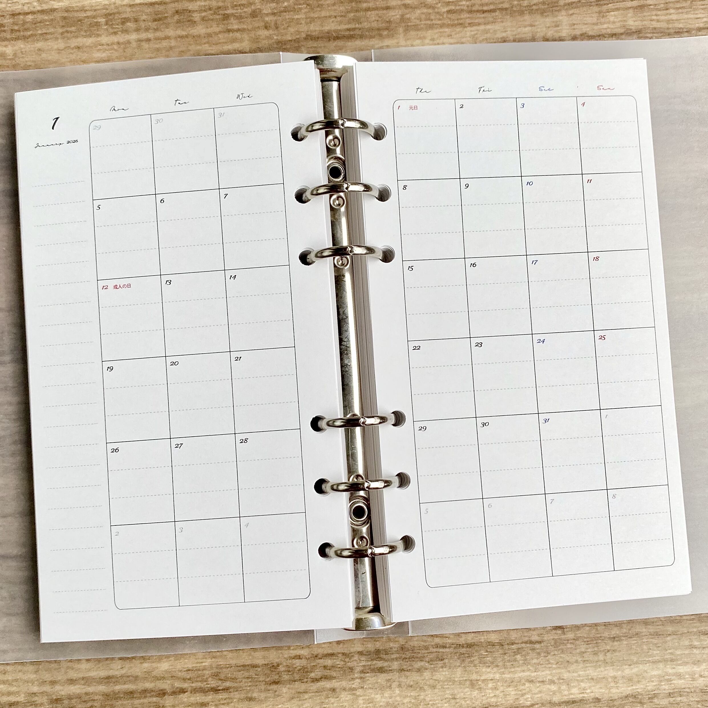 バイブルサイズのマンスリー(システム手帳リフィル)です。