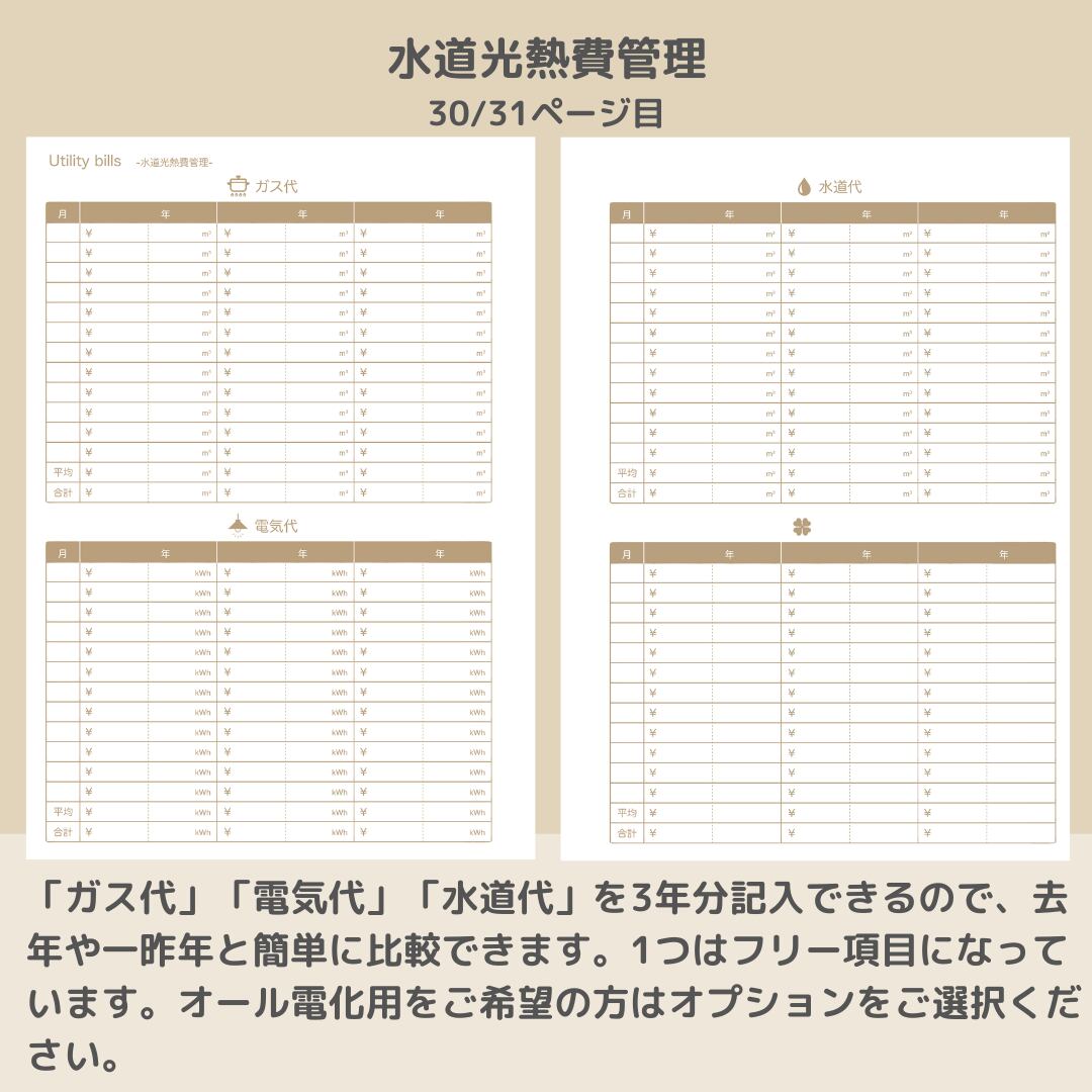 オール電化用もございます。左ページに電気代と水道代、右ページがフリー項目になっています。オール電化用をご希望の方はオプションを選択してください。