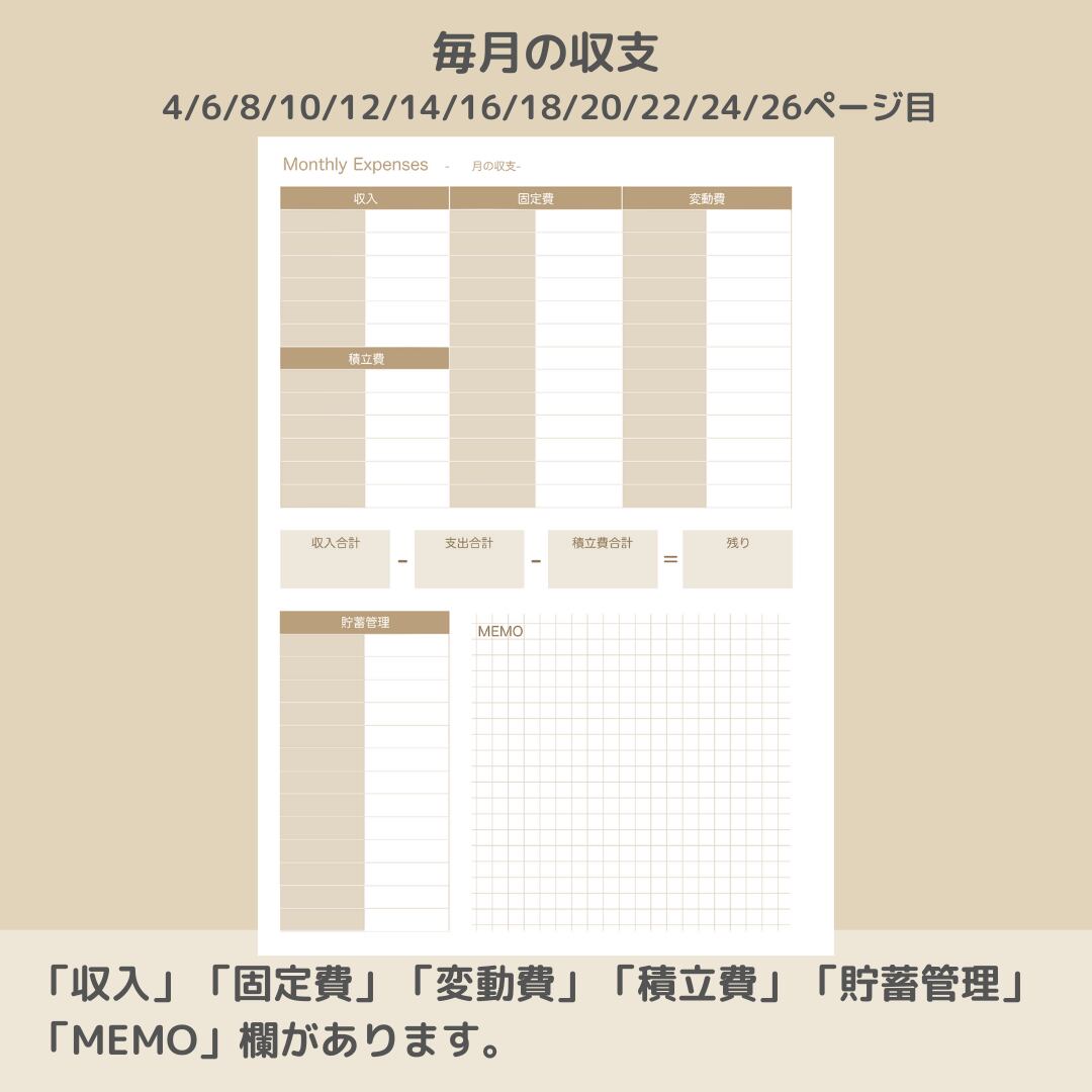 必要最低限を詰め込んだセットなので、初めて家計簿を使う人にも使いやすいデザインになっています。