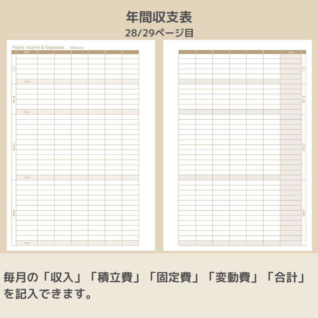 A5サイズ 家計簿セット① システム手帳リフィル 茶色