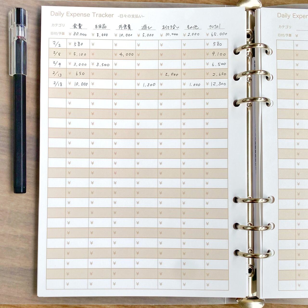 A5サイズの月間家計簿(システム手帳用リフィル)です。