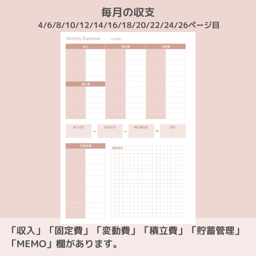 必要最低限を詰め込んだセットなので、初めて家計簿を使う人にも使いやすいデザインになっています。