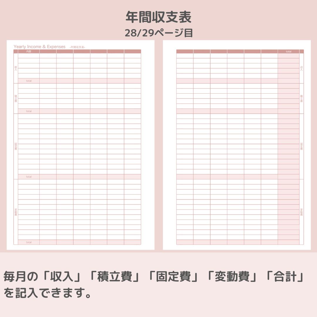 A5サイズ 家計簿セット① システム手帳リフィル ピンク
