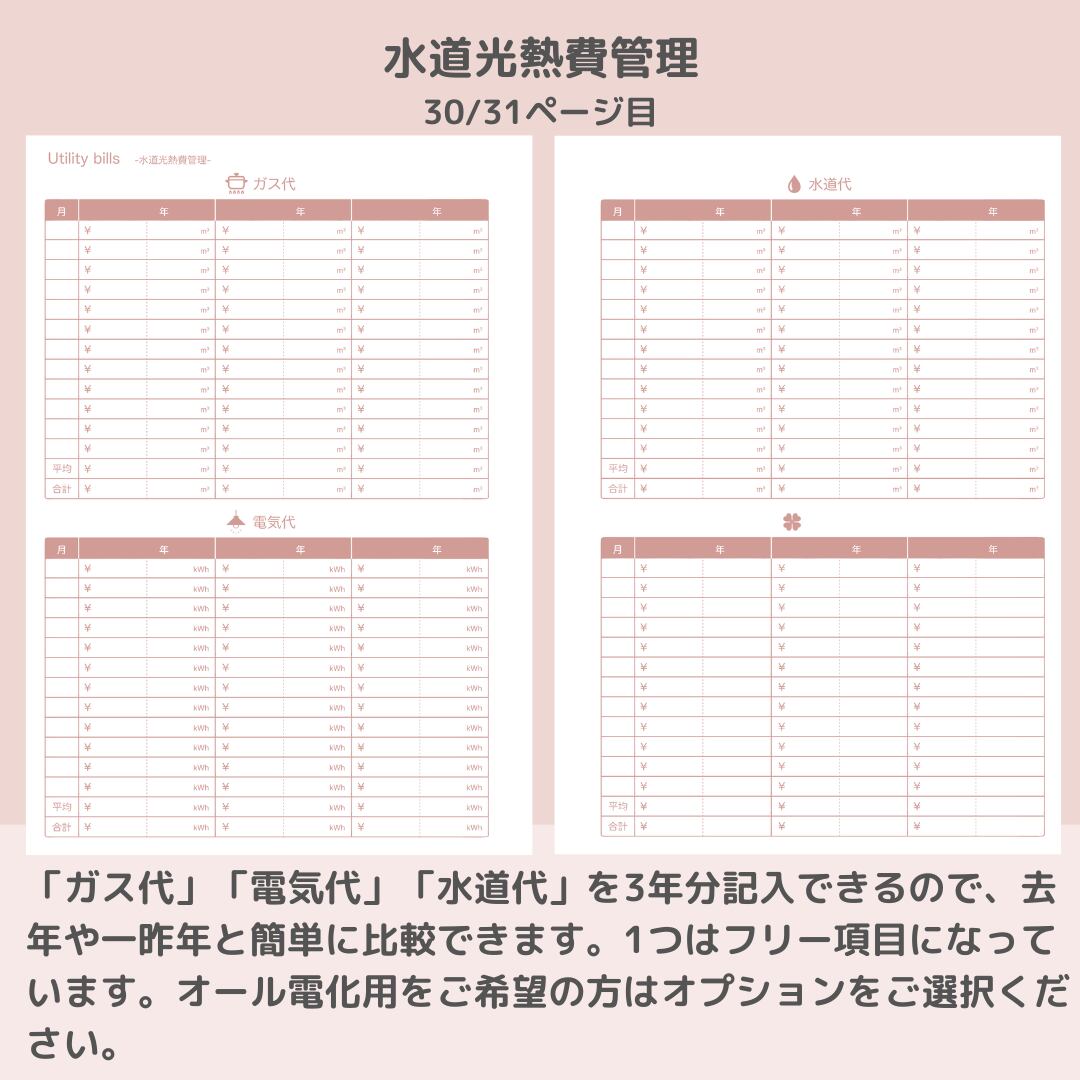 オール電化用もございます。左ページに電気代と水道代、右ページがフリー項目になっています。オール電化用をご希望の方はオプションを選択してください。