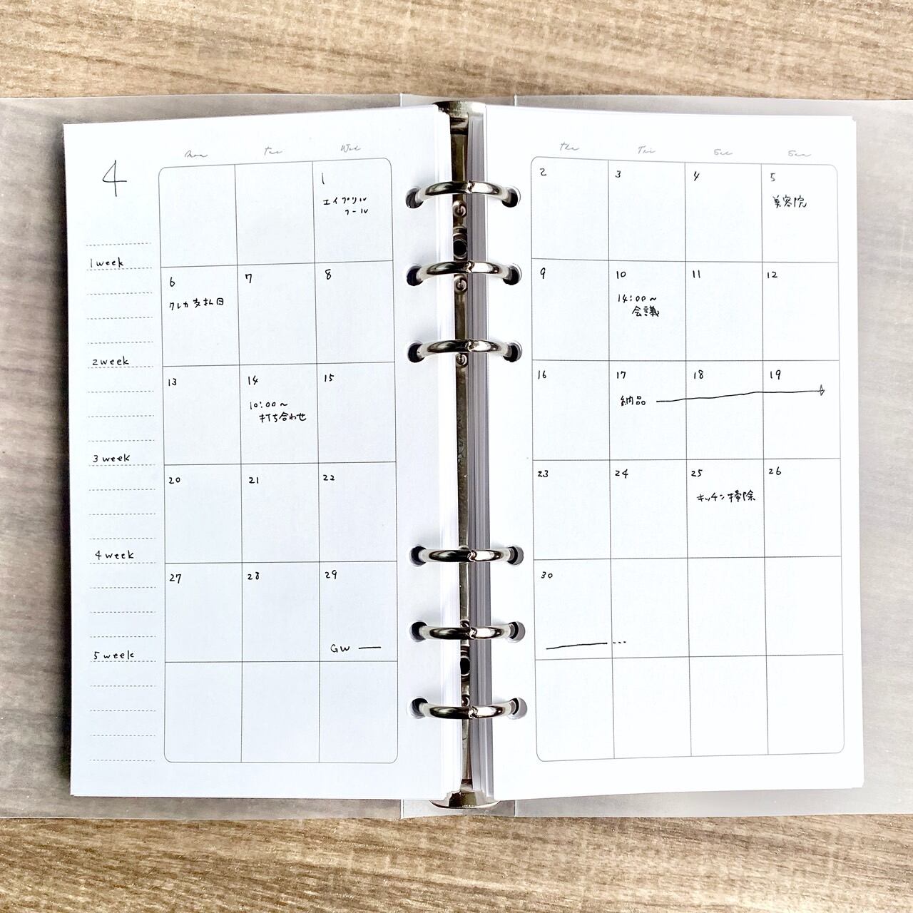 バレットジャーナル 手帳 シンプル ルーズリーフ 月間スケジュール表