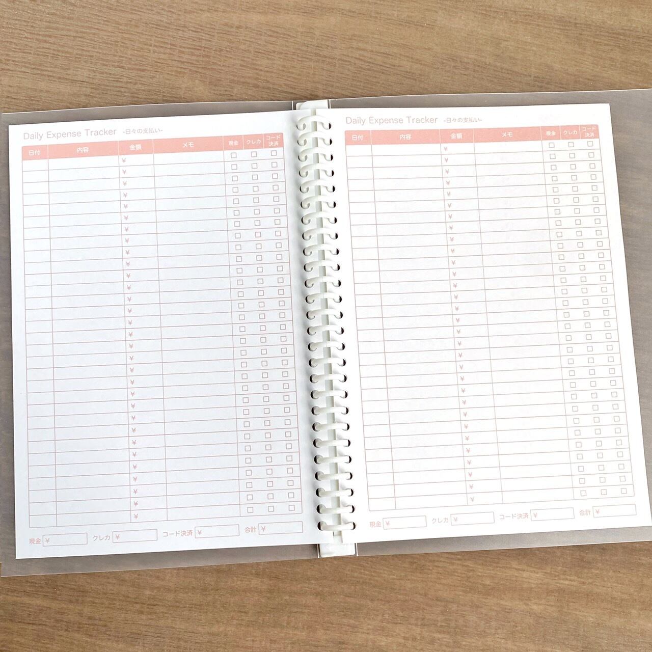B5サイズの月間家計簿(ルーズリーフ)です。