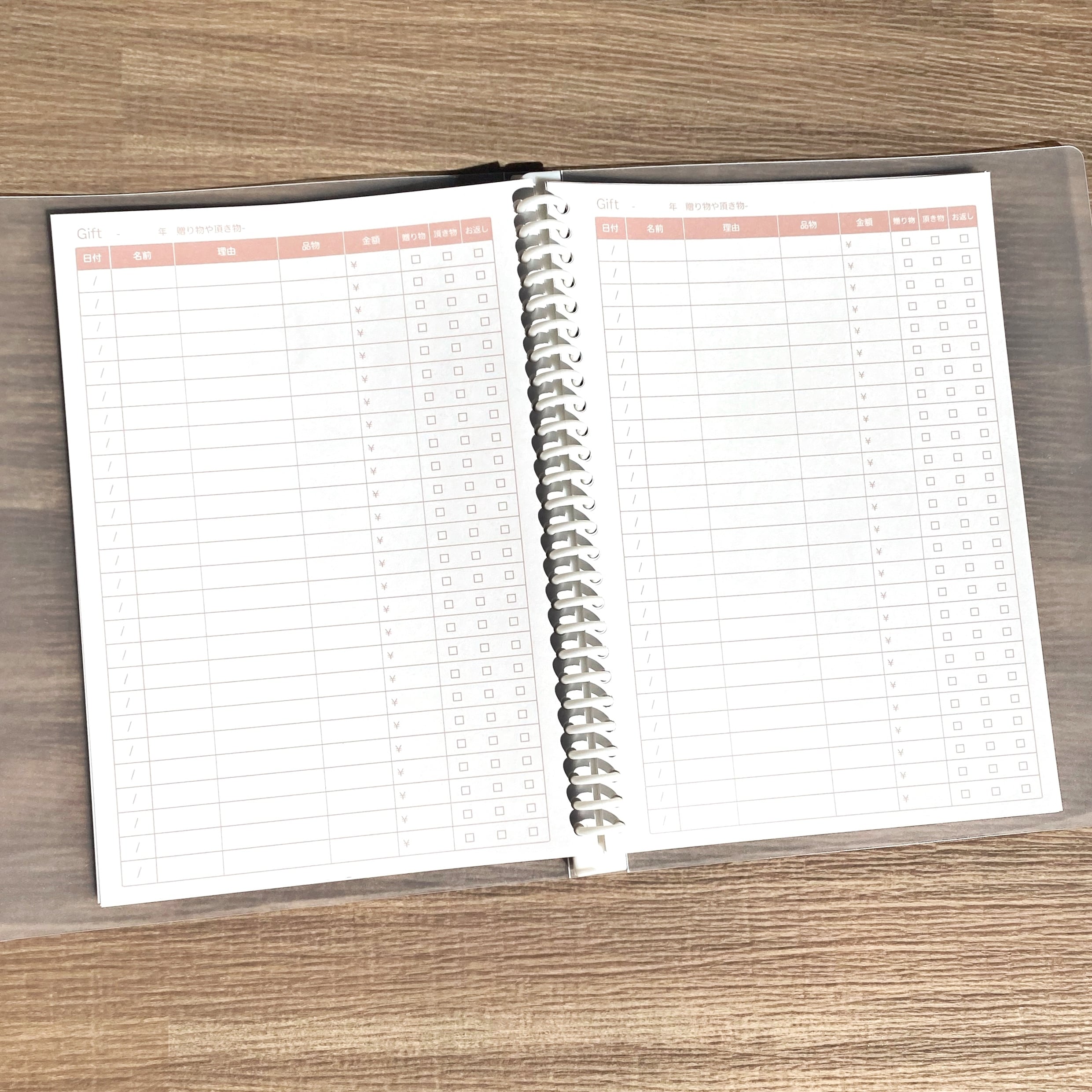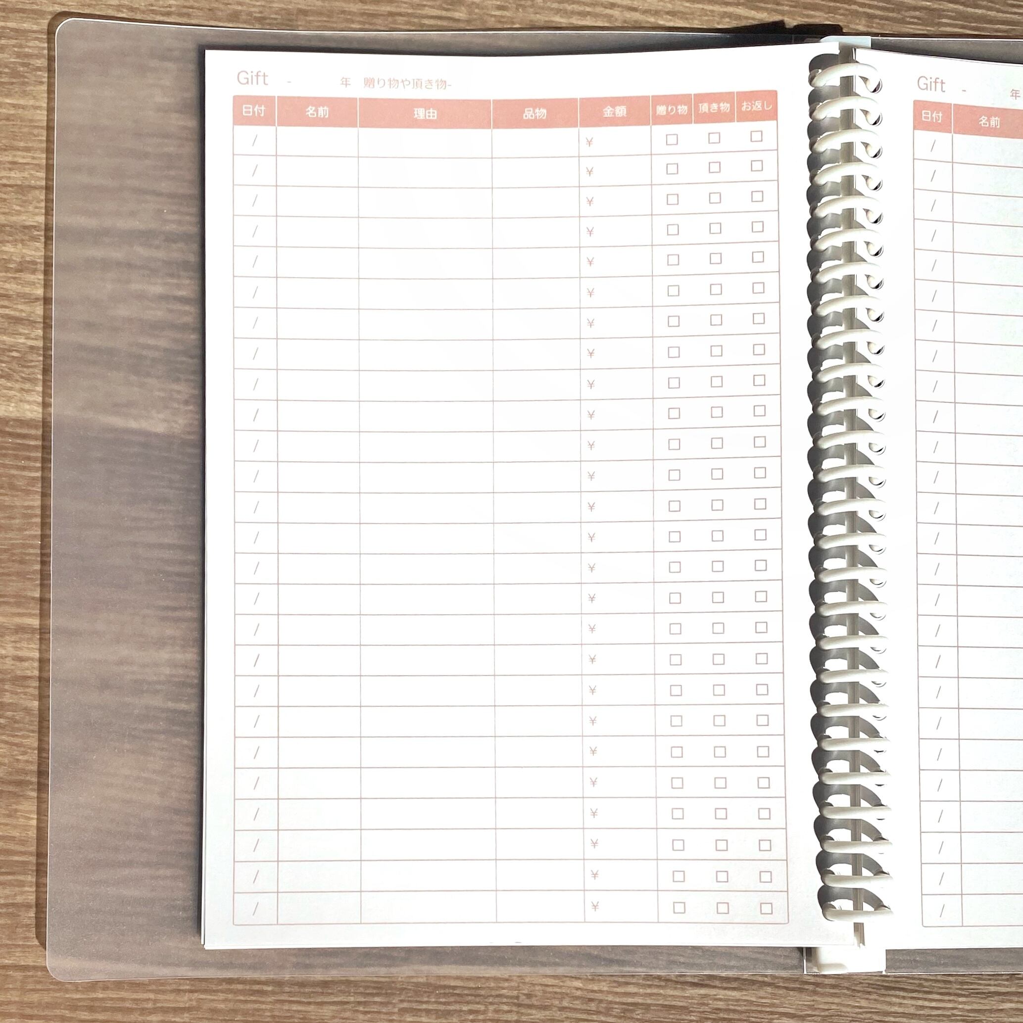 B5サイズのギフト管理表(ルーズリーフ)です。
